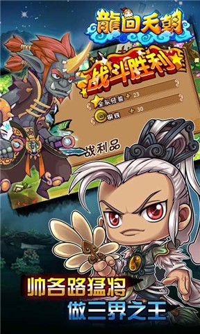 《龙回天朝》是一款以中国传统神话西游记为题材的Q版RPG手机网游,画面Q萌,玩法独特,操作简单易上手。在游戏中玩家可当土匪:砸挂摊,劫财宝,搜罗美女哄领导。或当天王:收妹子,招武将,驰骋天界做大王。